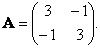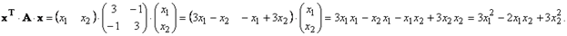 Пусть k(x) = 3x12 − 2x2x1+ 3x22— квадратичная форма в пространствеR2. И пусть e1= (1, 0), e2= (0, 1) — базис в R2. Марица A квадратичной формы в этом базисе имеет вид: