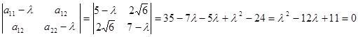 = (6 – λ)(2 – λ) -5 = 12 – 6λ – 2λ + λ2