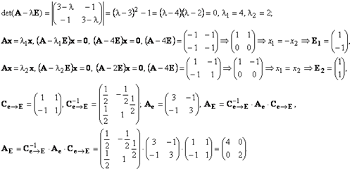 Найдём канонический базис квадратичной формы — собственный базис матрицы A и приведём её к диагональному виду: