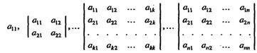 , т. е. миноры порядка 1, 2, ... , п матрицы А, расположенные в левом верхнем углу; последний из них совпадает с определителем матрицы.