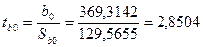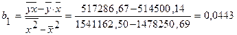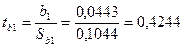 Подставив числовые значения, значения коэффициентов b0 и b1 , их средние квадратичные отклонения и значение для t имеем: