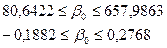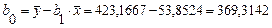или 0.4244<2,2280, т.е. с надежностью 0,95 оценка b0