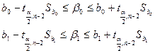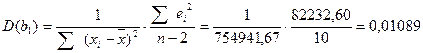 Дисперсии средние квадратичные отклонения коэффициентов b0 и b1 уравнения регрессии определим из равенств с использованием результатов табл. 2.
