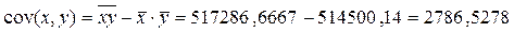 Тесноту связи между переменными X и Y определяем через ковариацию и коэффициент корреляции.
