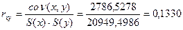 Величина rxy =0,1330 , близка к 1, что характеризует слабую линейную связь между независимым и результативным признаками.