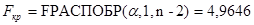 Найдем для заданной доверительной вероятности 0,05 критическое значение статистики Фишера: