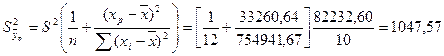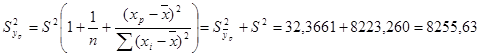 Дисперсия конкретного значения прогнозируемой величины yp равна
