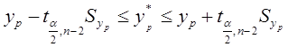 С уровнем значимости a=0,05 доверительный интервал для условного математического ожидания yp при данном xp равен: