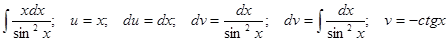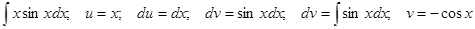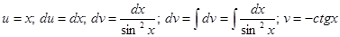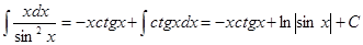 1. Находим неопределенный интеграл, методом интегрирования по частям,