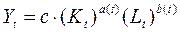 Модификация функции, учитывающей технический прогресс, достигается введением дополнительного сомножителя