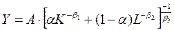 Отсюда и происходит название функции. Функция CES, как и функция Кобба-Дугласа, исходит из допущения о постоянном убывании предельной нормы замещения используемых ресурсов. Между тем эластичность замещения капитала трудом и, наоборот, замены труда капиталом в функции Кобба-Дугласа, равная единице, здесь может принимать различные значения, не равные единице, хотя она и является постоянной. Наконец, в отличие от функции Кобба-Дугласа, логарифмирование функции CES не приводит к линейному виду, что вынуждает использовать для оценки параметров более сложные методы нелинейного регрессионного анализа.