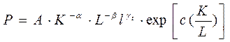 Попытаемся улучшить точность аппроксимации, ослабив требования к параметрам производственной функции. Для этого введем еще один параметр.