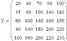 Построим матрицу значений производственной функции: