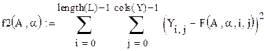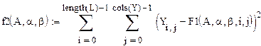 Неизвестные параметры ПФКД определим путем минимизации суммы квадратов уклонений ПФКД от наблюдаемых значений выпуска продукции.