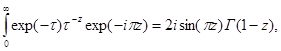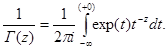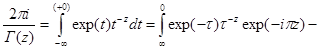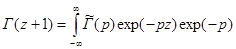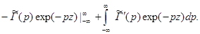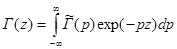 Эта формула справедлива, если существуют пределы для внеинтегрального члена. Заранее нам не известно поведение образа [(G)\tilde](p) при p®±¥. Предположим, что образ гамма-функции таков, что внеинтегральное слагаемое равно нулю. После того, как будет найдено решение, надо будет проверить, верно ли предположение о внеинтегральном слагаемом, иначе придется искать G(z) как-нибудь по-другому.