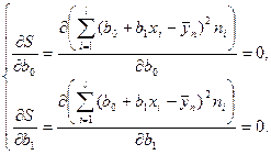 После преобразований получаем систему нормальных уравнений для определения параметров линейной регрессии: