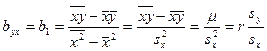 Сравнение уравнения регрессии, полученные методом наименьших квадратов, с уравнением регрессии двумерной случайной величины с нормальным законом распределения показывает их идентичность. Поэтому для оценки линейного уравнения регрессии генеральных совокупностей