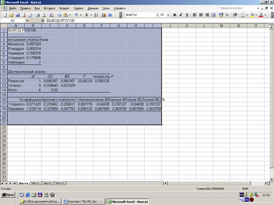 нет оснований отвергать нулевую гипотезу. Значимость коэффициента корреляции свидетельствует и о значимости коэффициентов регрессии, соответственно и о значимости линейного уравнения регрессии.
