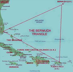 Бермудский Треугольник - широко известная аномальная зона. Расположен он в границах между Бермудскими островами, Майями во Флориде и Пуэрто-Рико. Площадь Бермудского треугольника составляет свыше одного миллиона квадратных километров. Рельеф дна в этой акватории хорошо изучен. На шельфе, который составляет значительную часть этого дна, было проведено множество бурений с целью отыскать нефть и другие полезные ископаемые. Течение, температура воды в разное время года, ее соленость и движение воздушных масс над океаном - все эти природные данные занесены во все специальные каталоги. Этот район не особенно сильно отличается от других похожих географических мест. И, тем не менее, именно в районе Бермудского треугольника загадочно исчезали суда, а затем и самолеты.