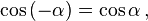 Косинус — единственная чётная функция. Остальные три функции — нечётные, то есть: