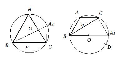 R – радиус описанной окружности, ВС = a, BA1 - диаметр