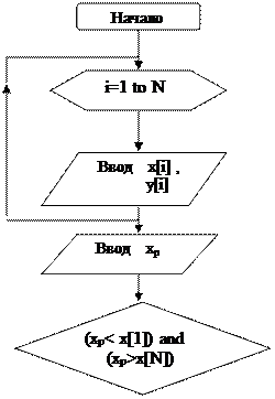 if (x[i-1]<=xр) and (xр<=x[i-1]) then