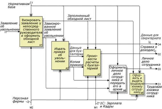 На рис. 4 приведена диаграмма IDEF0 верхнего уровня бизнес-процесса "Увольнение сотрудника".