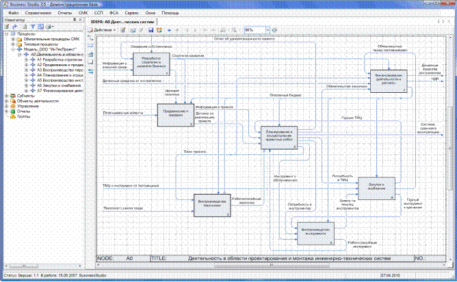 IDEF0 - одна из наиболее популярных нотаций моделирования бизнес-процессов семейства нотаций IDEF, основанная на методологии структурного анализа SADT (StructuredAnalysis & DesignTechnique*). IDEF0 служит для создания функциональной модели, включающей структурированное описание функций, действий или процессов моделируемой системы.В графической нотации IDEF0 всего два элемента: блоки и стрелки. Блоки обозначают процессы или функции рассматриваемой системы, а стрелки отражают связи между процессами или с внешней средой.