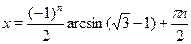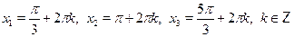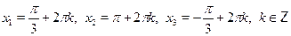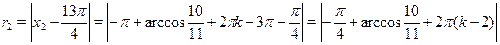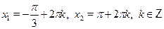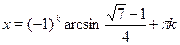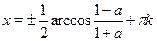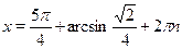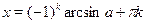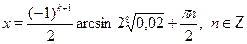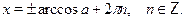 може приймати будь-які цілі значення, кожному з них відповідає певний корінь рівняння; у цій формулі (так само як і в інших формулах, по яких вирішуються елементарні тригонометричні рівняння)