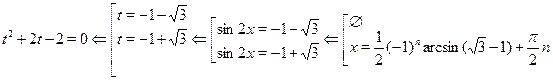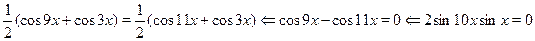 Рішення. Найбільш очевидним є наступний шлях. Дане рівняння розпадається на два