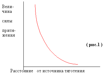 Среди всех сил, которые существуют в природе, сила тяготения отличается прежде всего тем, что проявляется повсюду. Все тела обладают массой , которая определяется как отношение силы , приложенной к телу, к ускорению, которое приобретает под действием этой силы тело. Сила притяжения, действующая между любыми двумя телами, зависит от масс обоих тел; она пропорциональна произведению масс рассматриваемых тел. Кроме того, сила тяготения характеризуется тем, что она подчиняется закону обратной пропорциональности квадрату расстояния ( рис. 1 ). Другие силы могут зависеть от расстояния совсем иначе; известно немало таких сил.