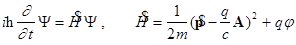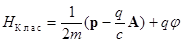 где учтена возможность взаимодействия зарядов с электрическим и магнитным полями, описываемыми потенциалами