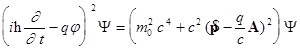 Основная математическая трудность, возникающая при попытке перевести релятивистскую формулу (3) на язык квантово-механических операторов состояла в том, что операция извлечения корня из оператора не определена. Предложенный выход состоял в переходе к уравнению второго порядка, возникающего при возведении в квадрат операторного аналога уравнения (3), где сам оператор Гамильтона согласно (1) заменялся на оператор дифференцирования по времени: