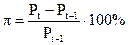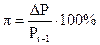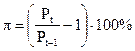 Главным показателем инфляции выступает темп (или уровень) инфляции (rate of inflation - p), который рассчитывается как процентное отношение разницы уровней цен текущего и предыдущего года к уровню цен предыдущего года: