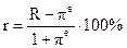 Поскольку, как уже отмечалось, общая формула реальной ставки процента, применимая при любых темпах инфляции: