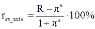 то следует различать реальную ставку процента ex ante и реальную ставку процента ex post . Приведенная формула – это формула реальной ставки процента ex ante. Реальная ставка процента ex ante – это реальный доход, который рассчитывает получить кредитор, предоставляя кредит, поэтому она определяется величиной ожидаемого темпа инфляции (pe ). Реальная ставка ex post – это реальный доход, который получает кредитор при возвращении кредита, поэтому она определяется фактическим темпом инфляции (pфакт ) и может быть рассчитана по формуле: