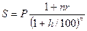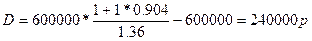 Р=600000 руб. , i= 40 % ; h = 36% ; n = 1