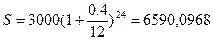 Задание 7. Определите наращенную сумму вклада в 3000 руб. при сроке вклада 2 года по номинальной процентной ставке 40% годовых. При начислении процентов: