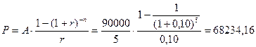 Применим формулу текущей стоимости срочного аннуитета постнумеранда.