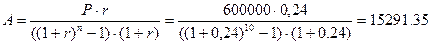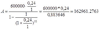 Задание 15 Коттедж стоимостью 600 тыс. руб. куплен в рассрочку на 10 лет под 24 % годовых. Какова величина ежегодного равновеликого взноса при погашении долга.