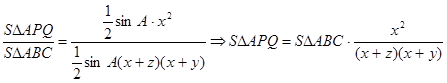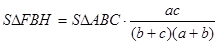 Этап 2 : Найдем отношение площади треугольника, вершины которого – основания биссектрис данного треугольника, к площади данного треугольника АВС.