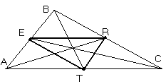 АВС медианы, пересекающие стороны АВ, ВС и АС соответственно в точках E, R и T.