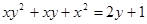 Условие: Решить уравнение xy2 + xy + x2 – 2y – 1 = 0 в целых числах.