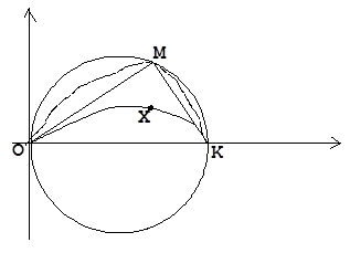 Т.е. графиком данной функции будет произвольная кривая, в которую вписан угол (угол OMK = 900 )