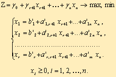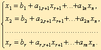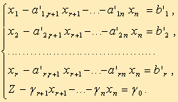 Здесь для определенности записи считается, что в качестве базисных переменных можно взять переменные X1 , X2 , ..., Xr и что при этом b1 , b2 ,..., br ≥ 0 (соответствующее базисное решение является опорным).