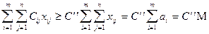 Выберем из значений Cij наибольшее C¢ = max Cij и заменим в линейной функции ( 1 ) все коэффициенты на C¢ тогда, учитывая ( 2 ) , получим