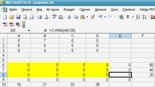 3. Введите в ячейки диапазона E6:E8 запасы.