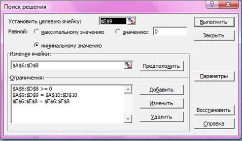 В диалоговом окне Параметры поиска решения установить флажок Линейная модель. После нажатия кнопки. Выполнить средство поиска решений находит оптимальный план поставок продукции и соответствующие ему транспортные расходы.