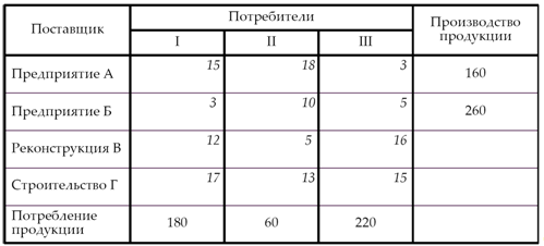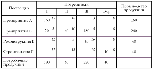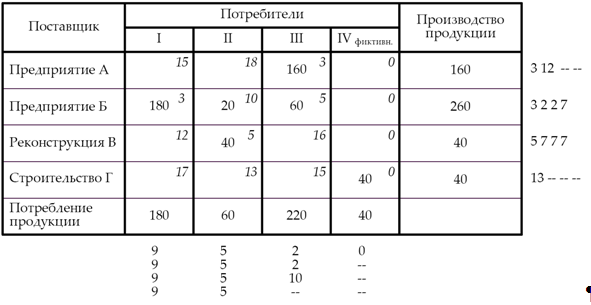 Следовательно, матрица – вырожденная, поэтому в одну из свободных ячеек в зоне вырождения вводим условную нулевую поставку груза.