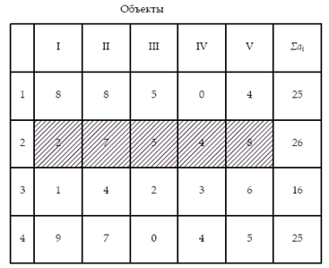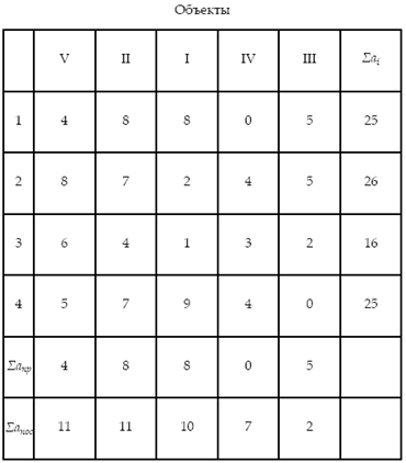 а) на первом месте располагается объект с наибольшим значением Σапос . Остальные объекты располагаются так, чтобы Σапр постепенно возрастало, а Σапос снижалась к концу матрицы;